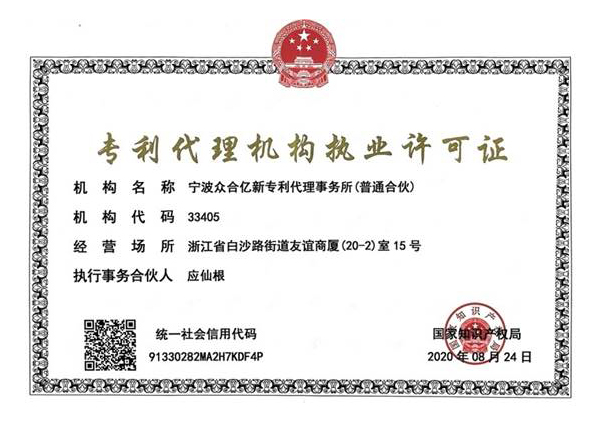 浙江億新知識產權服務有限公司前身為慈溪眾合知識產權代理事務所,創(chuàng)始于2004年,為了服務更多的創(chuàng)新企業,實現“服務億萬創(chuàng)新企業”的理念,后更名為浙江億新知識產權,旗下公司包括:寧波眾合億新專利代理事務所(機構代碼33405)、中范(北京)認證有限公司。其中寧波眾合億新專利代理事務所是慈溪市科技服務聯盟理事單位,前灣區知識產權工作站。公司位于浙江省慈溪市文化商務區友誼商廈,并在北京、青島設有辦事處。